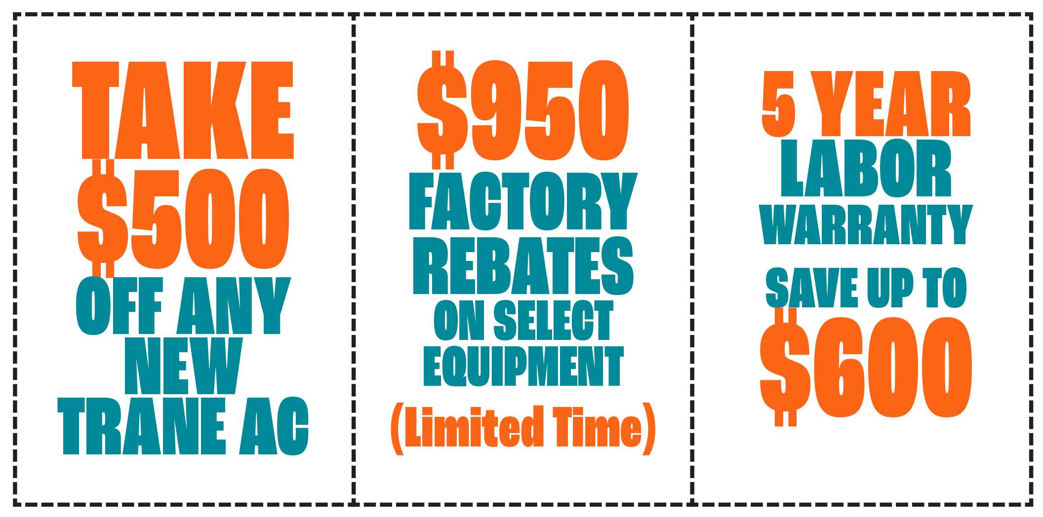 As a Trane Comfort Specialist, we get access to all the regular and special factory rebates. Check out the latest promotions.
