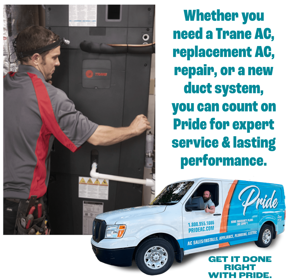 Pride Air Conditioning & Plumbing is a Trane Comfort Specialist and proud independent Trane dealer, offering the full line of Trane cooling & heating products. Our certified technicians are committed to the highest installation standards & delivering the best customer experience possible — from start to finish.